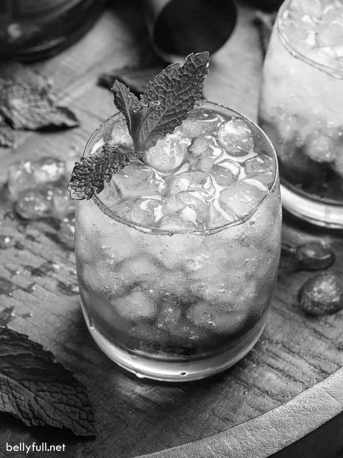 A refreshing blend of bourbon, fresh mint, and a touch of sweetness, served over crushed ice.